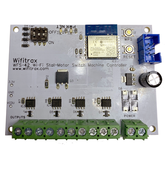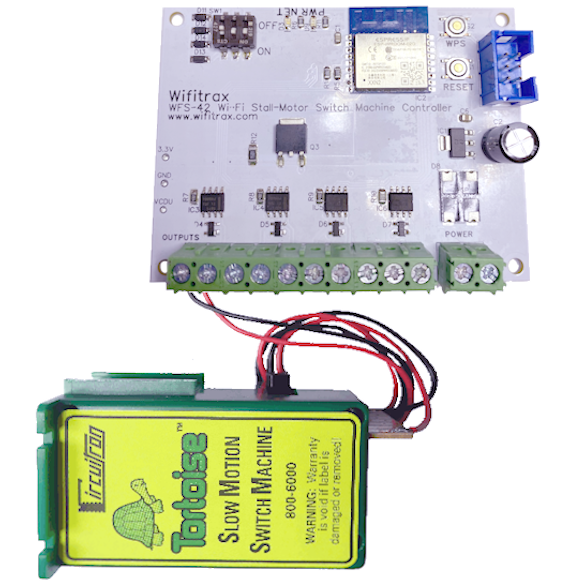 The WFS-42 can operate stall-motor switch machines only. It does not have its own DCC input but relies on the WFD-60 to accept DCC for a collection of WFS-42 modules.